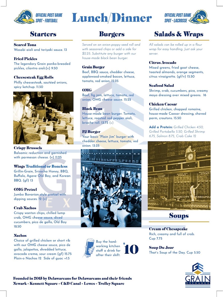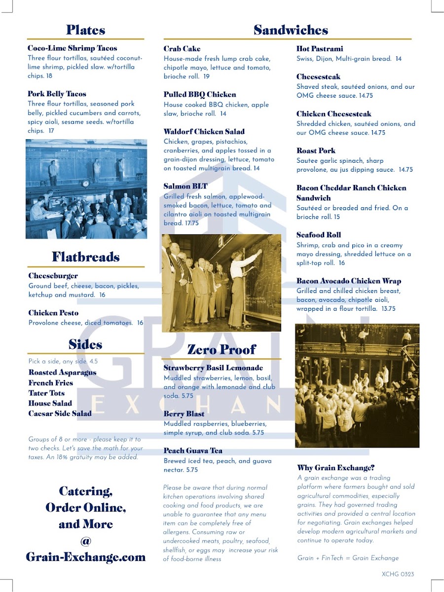 Located at 591 Collaboration Way in Newark, DE, Grain Exchange is a vibrant dining destination that celebrates community, flavor, and hospitality. This welcoming venue offers both indoor and outdoor seating, making it perfect for any occasion, whether you're enjoying a sunny brunch or a cozy dinner under the stars.